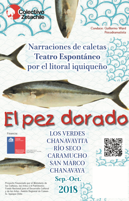 1° de septiembre al 13 octubre 2018.- Itinerancia de Teatro Espontáneo con el proyecto Fondart 2018 , "El Pez Dorado, narraciones de caletas", por las caletas de la costa de Iquique: Los Verdes, Caramucho, Chanavayita, Chanavaya, Río Seco y San Marco.